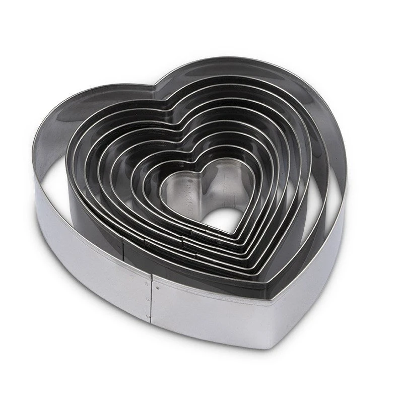 Blomsterbergs udstiksforme til bagning/ kage, desserterog anden madlavning. 9 stk hjerteformede der leveres i en metaldåse til opbevaring