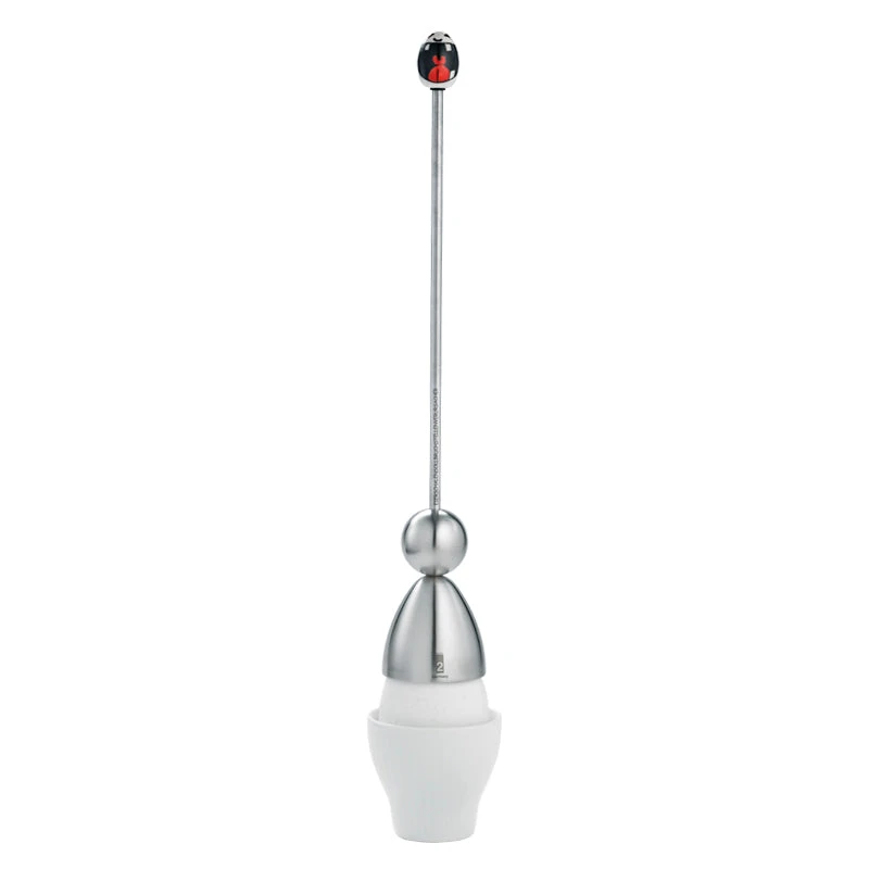 Clack placeres på det blødkogte æg, metalkuglen slippes og rammer ned på metalhætten. Derefter fjernes Clack og toppen af ægget skæres nemt af med en kniv.