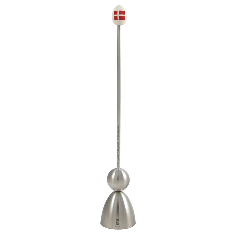 Clack placeres på det blødkogte æg, metalkuglen slippes og rammer ned på metalhætten. Derefter fjernes Clack og toppen af ægget skæres nemt af med en kniv.