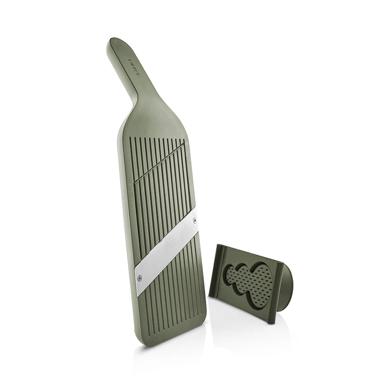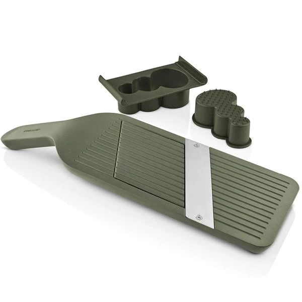 Green Tools serien fra Eva Solo introducere nu et mandolinjern. Du indstiller nemt skivetykkelsen på mandolinjernets bagside.