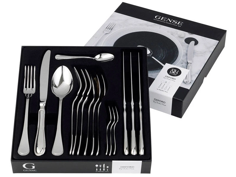 Sættet består af 4 stk. kniv, gaffel, ske og teske.Oxford bestikket oser af storslået indtryk med dets design og stil fremstillet af tykt rustfrit stål.Tykkelsen og det dybe mønster giver bestikket den rette designmæssige balance hvilket gør det passer til borddækningen til både hverdag og fest.