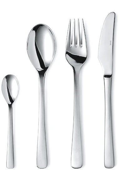 Leveres i æske. 16 dele. 4 knive, gafler, skeer og teskeer. Tåler maskinopvask.