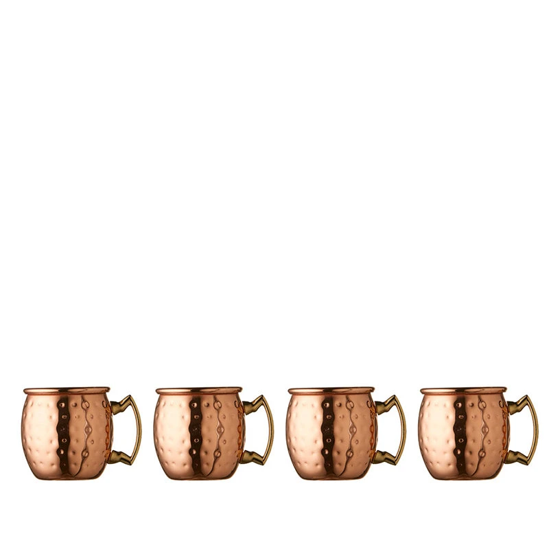 Små festlige shotkrus med hank og kobberbelagt, hamret ydersideKrusene er meget lette og rummer 6 cl.