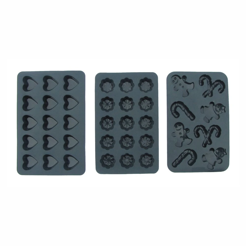 Chokoladeform i silikone, som gør det nemt at vende den færdige chokolade ud af. Sættet består af 3 forskellige forme – hjerter, blomster og julemotiver. De tåler opvaskemaskine og fryser ned til -20 grader.