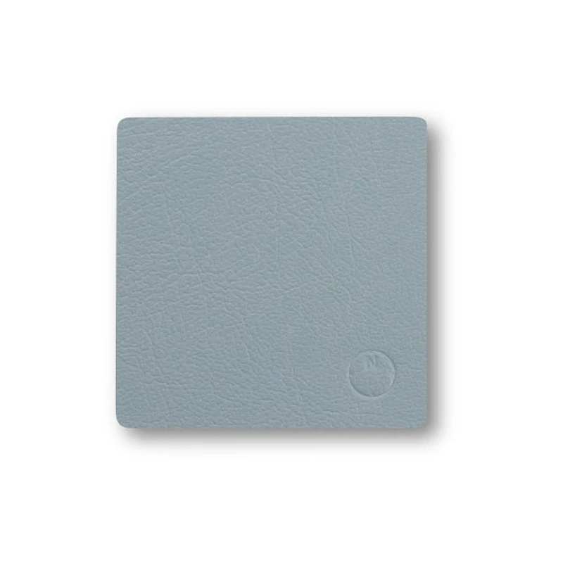 Noort firkantet glasbrik 10×10 cm ice blue. Isblå Dækkeservietter og glasbrikke fra Noort er fremstillet og designet i Danmark. Da de er fremstillet i 80% genbrugslæder og 20% naturgummi kan du med god samvittighed dække op med dem – samtidigt er de supernemme at rengøre.