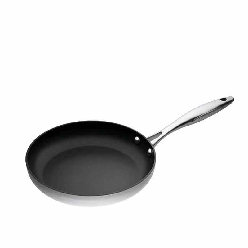 Scanpan stegepande med Stratanium – en non-stick belægning der giver den helt rigtige stegeskorpe. Sundere madlavning da der kan steges uden brug af fedtstof.En slipevne og slidstyrke der er forbedret med mere end 30% i forhold til de hidtil bedste non-stick belægninger.Med buede sider der gør det nemt at komme til med redskaber.Panden har et yderst behageligt håndtag der ligger godt i hånden og ikke bliver varmt (kan det blive over gaskomfur)Til alle komfurtyper- også induktion. Ovnfast op til 260 grader. Slidstærk og rengøringsvenlig non-stick belægning.