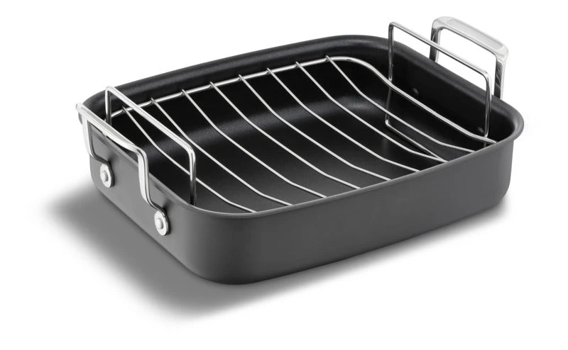 Jamie Oliver bradepande med rist 26×32 cm.Hard anodiseret aluminium. Til alle varmekilder, undtagen induktion.