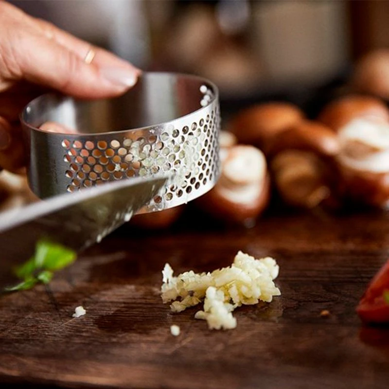 I rustfrit stål. Rulles blot henover hvidløget.